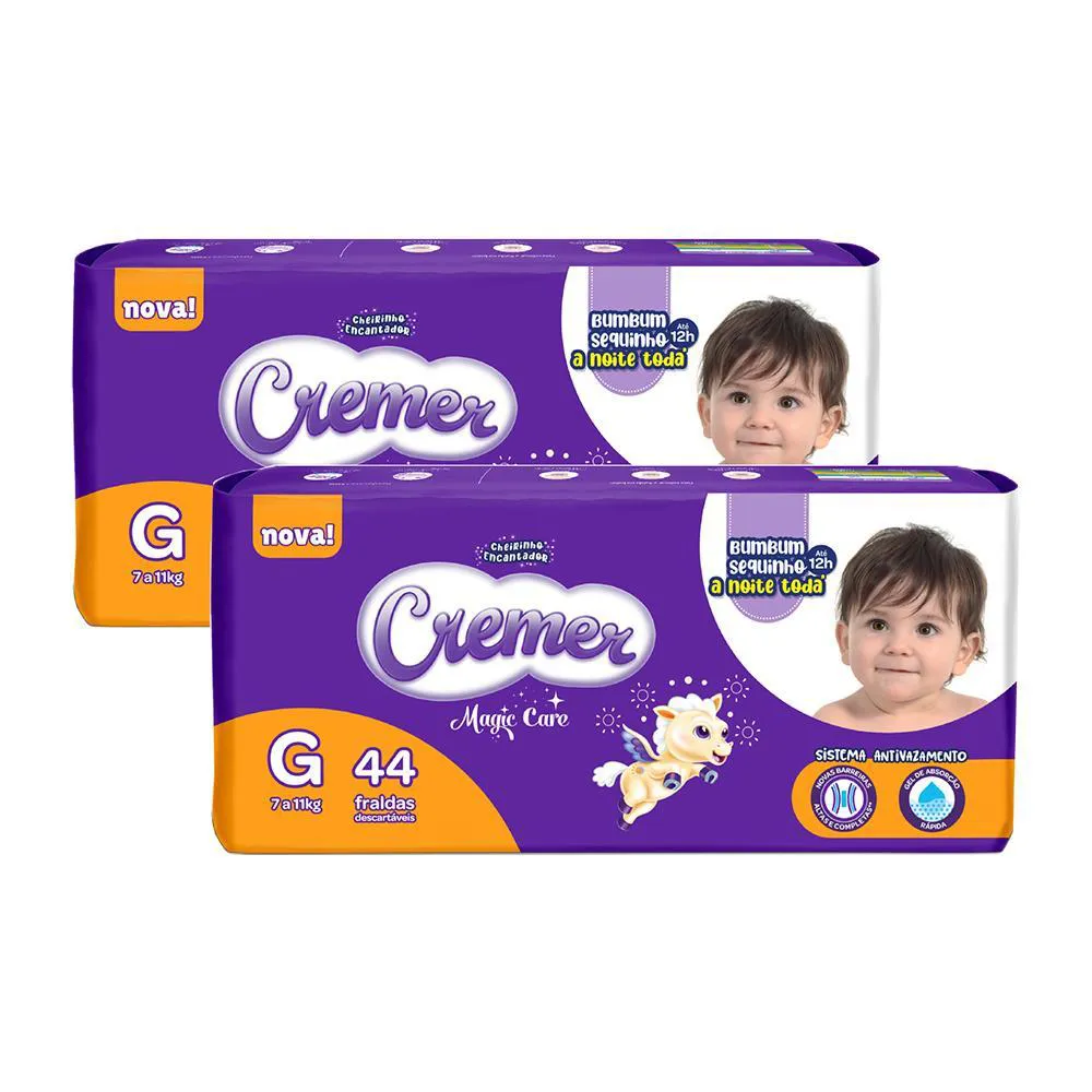 KIT 2 FRALDAS CREMER MAGIC CARE MEGA G COM 44UN CADA