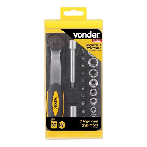 Jogo De Soquetes E Ponteiras Encaixe 1/4 Pol 25 Peças Vonder