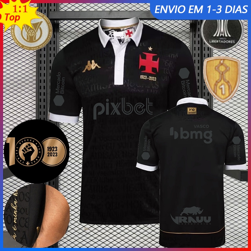 Vasco Camisa 2023/2024 Camisa do vasco III Preta 100th Especial Masculina Futebol Custom Patrocinador/patch