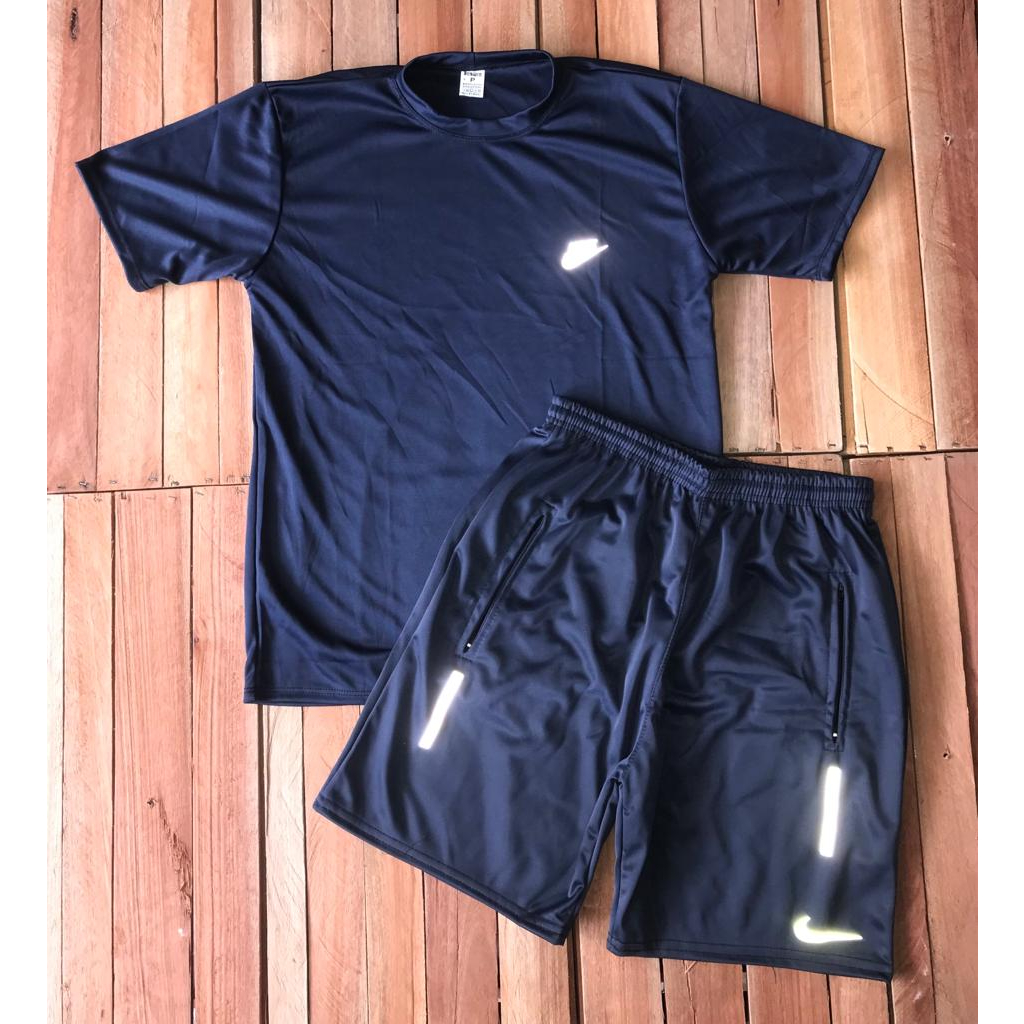 Camisa Azul + Bermuda Refletivel Dry Fit Pra Treinar
