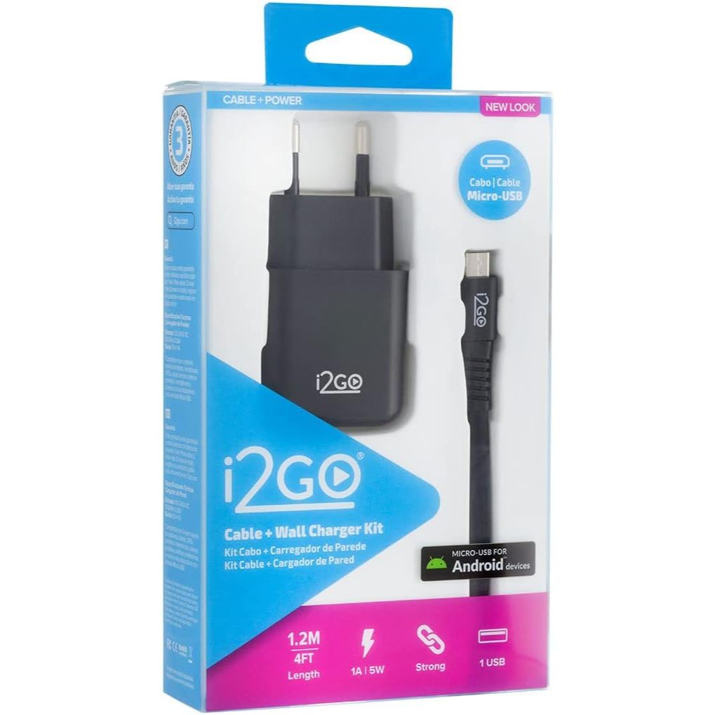 Kit Carregador de Parede USB 1A + Cabo Micro USB 2,4A i2GO Preto - i2GO Basic