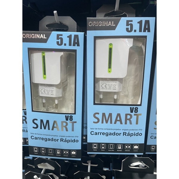 carregador de tomada v8 com 2 saídas USB 4.1A / 5.1A cabo 1.2 metros rápida (caixa azul)