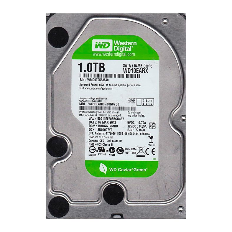 HD WD Blue, 1TB, 3.5, 7200 RPM, Sata III 6GB/s, Cache 64MB, WD10EARX