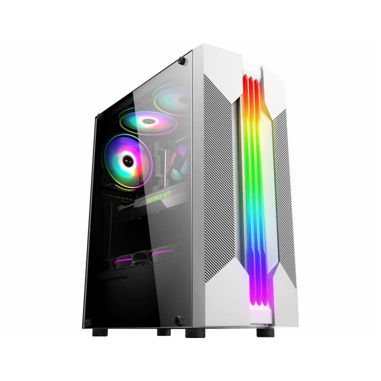 Gabinete Gamer K-mex Jaeger 2 - Frontal Led Rgb - Lateral Em Vidro - Branco - Cgw2tjrh010cb0x
