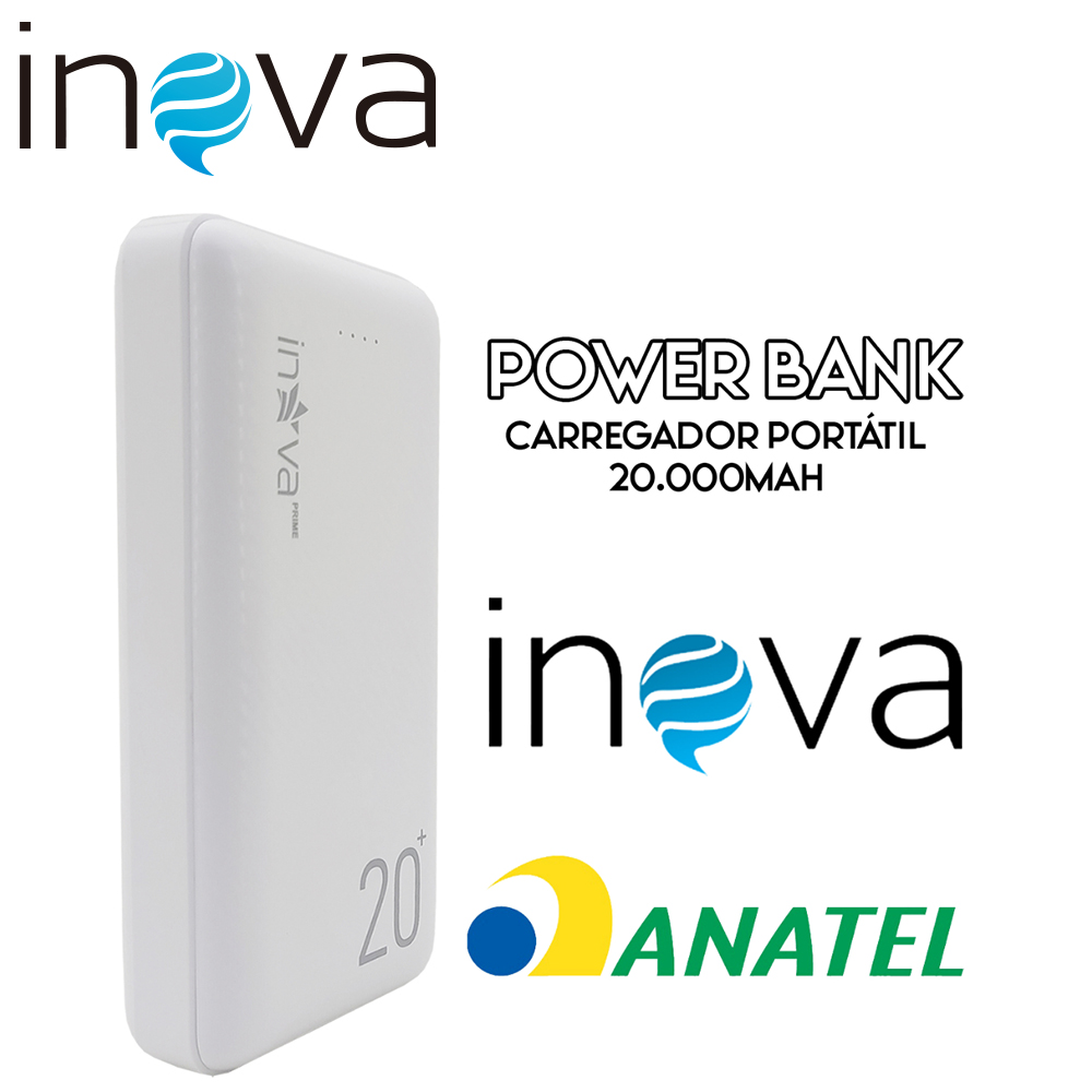 INOVA Carregador Portátil Power Bank Rápido 20000mah 2 Saídas Micro USB Type C