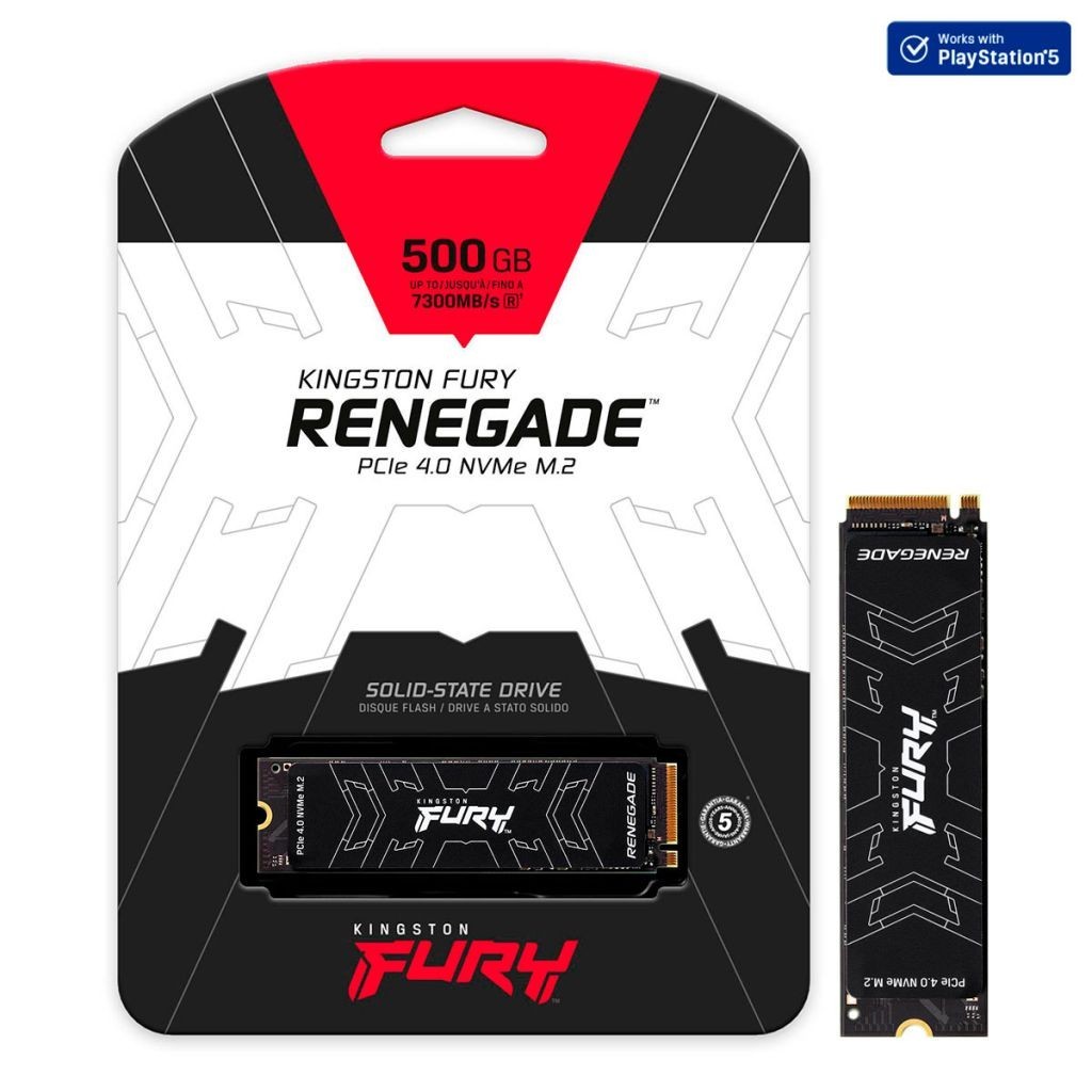 SSD 500GB Kingston Fury Renegade, com Dissipador, PCIe 4.0 NVMe M.2, Gen4x4, Leitura: 7300MB/s e Gravação: 3900MB/s, Preto, compatível com o PlayStation 5 - SFYRSK/500G