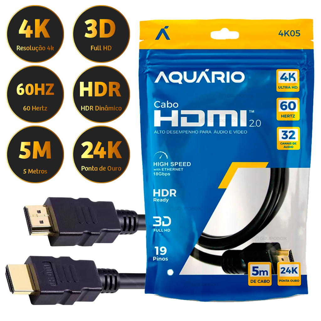 Cabo Hdmi 2.0 4k 2m, 3m, 5m, 10m Metros 4k 3d Full Hd Blindado Tv Ponta Gold 60hz