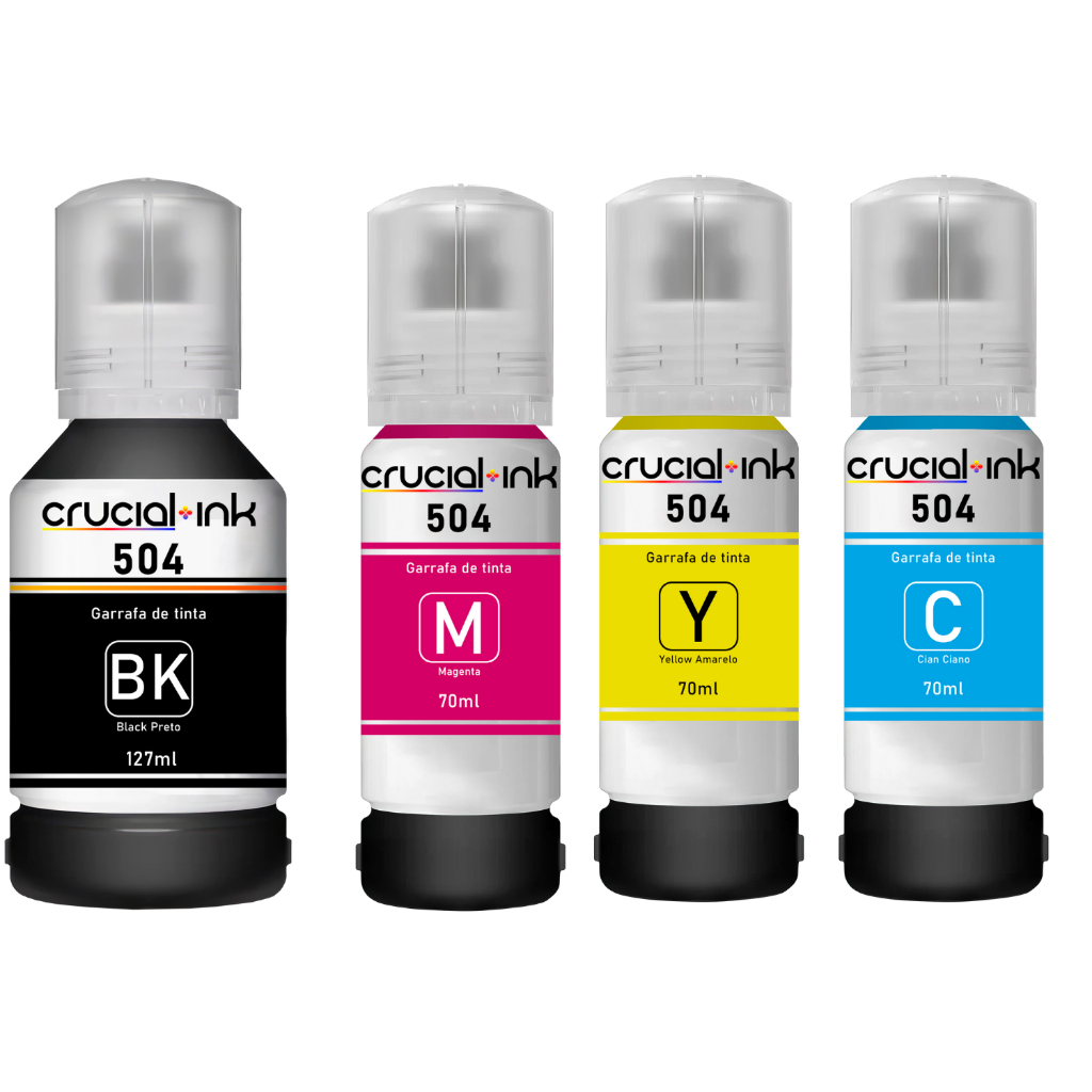Kit Refil de Tinta Epson T504 Ecotank, Compatível Impressoras L4150, L4160, L4260, L6161, L6171, L6191, L14150, L6270 - 4 Unidades