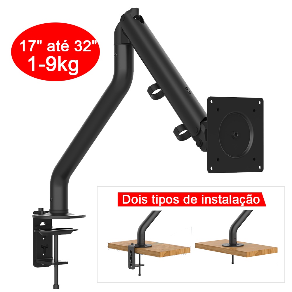 Suporte de Monitor Articulado Mesa para pc Metal 17 ate 32 Mola Pneumática