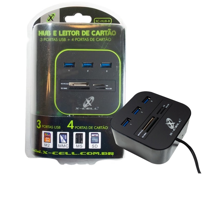 Hub USB 3 Portas leitor de Cartão Micro SD Integrado USB 2.0 -XC- HUB-8