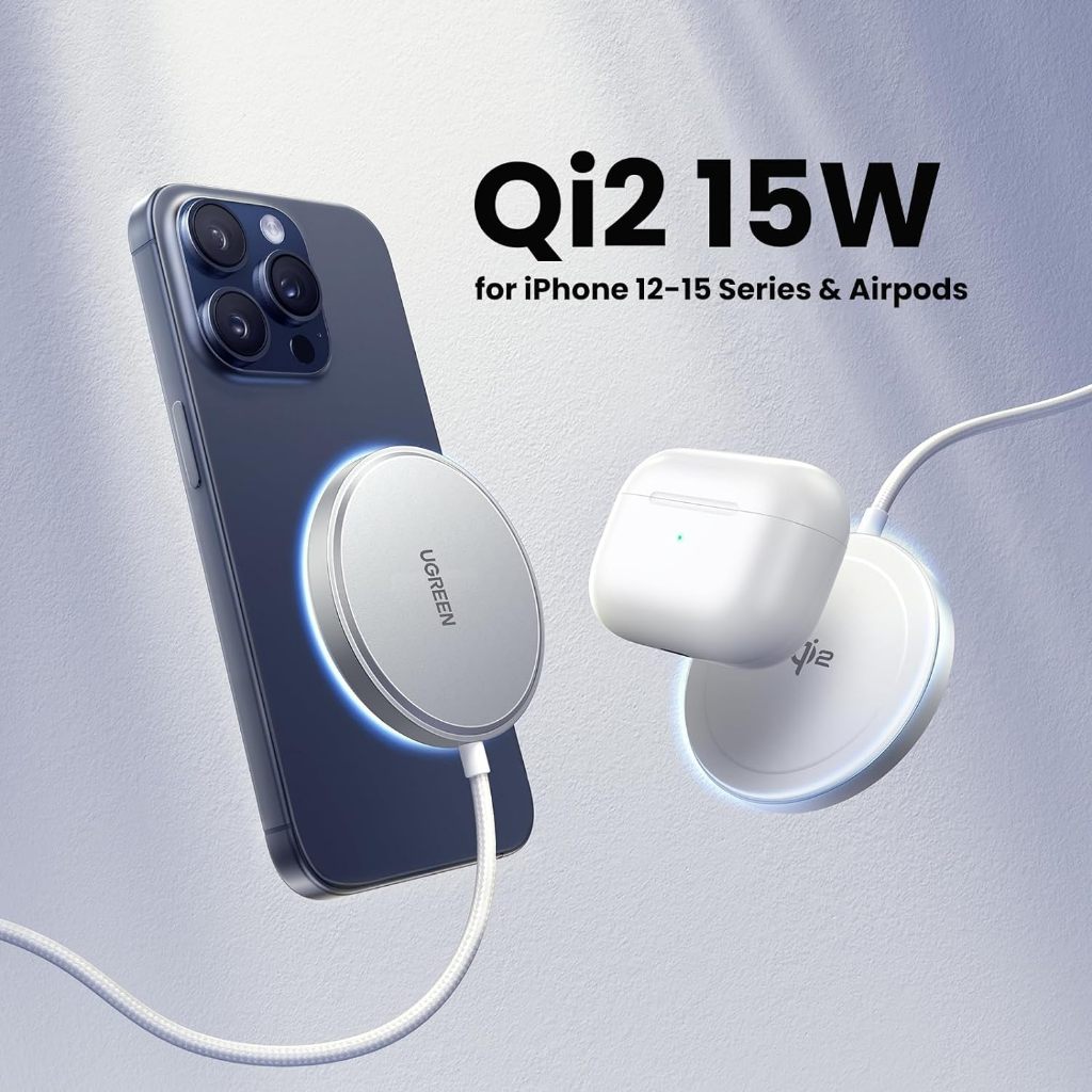 Ugreen Carregador sem fio Magsafe 15W padrão Qi certificado mfm ( com cabo USB C de 1,5M integrado ) Indução Magnético Wireless compatível 15 Plus Pro Max 14 13 12 série AirPods Pro 2/3
