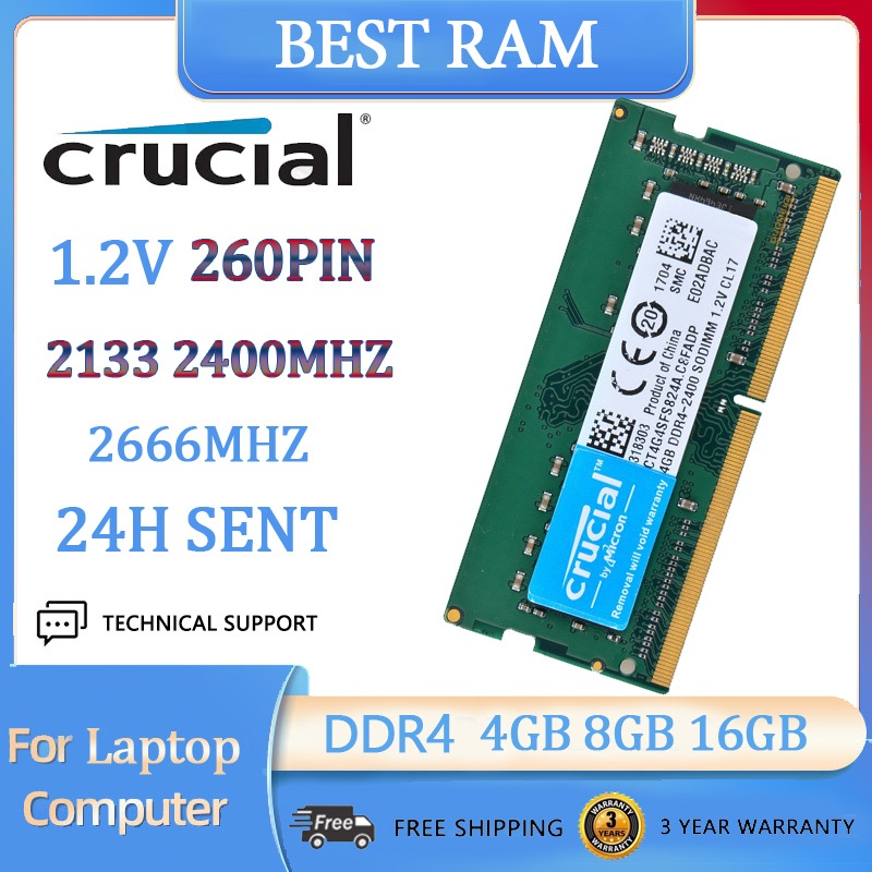 Crucial DDR4 RAM 4GB 8GB 16GB 2133MHz 2400MHz 2666MHz 3200MHz Memoria para Notebook LAPTOP