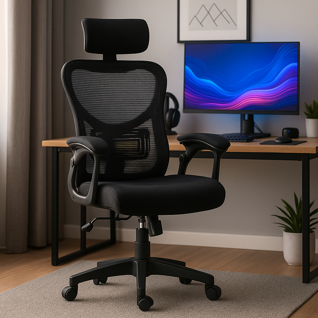 Cadeira Ergonômica Escritório Reclinável Mesh Preta Altura Ajustável Apoio Lombar Cabeça 120kg