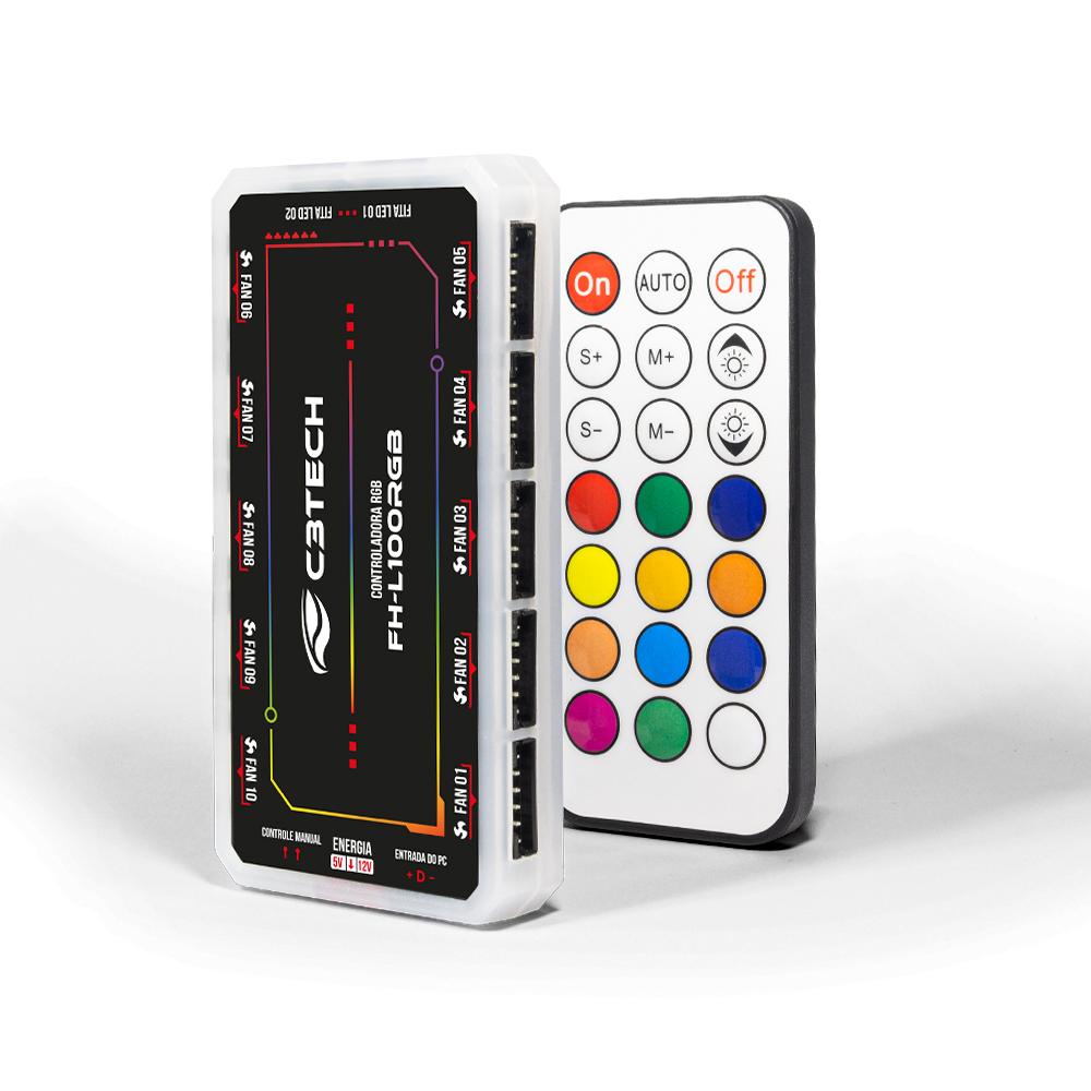 Controlador de Fan C3Tech, Conector ARGB, Conexão de 10 Coolers, 2 fitas Leds, Controle Remoto - FH-L100RGB