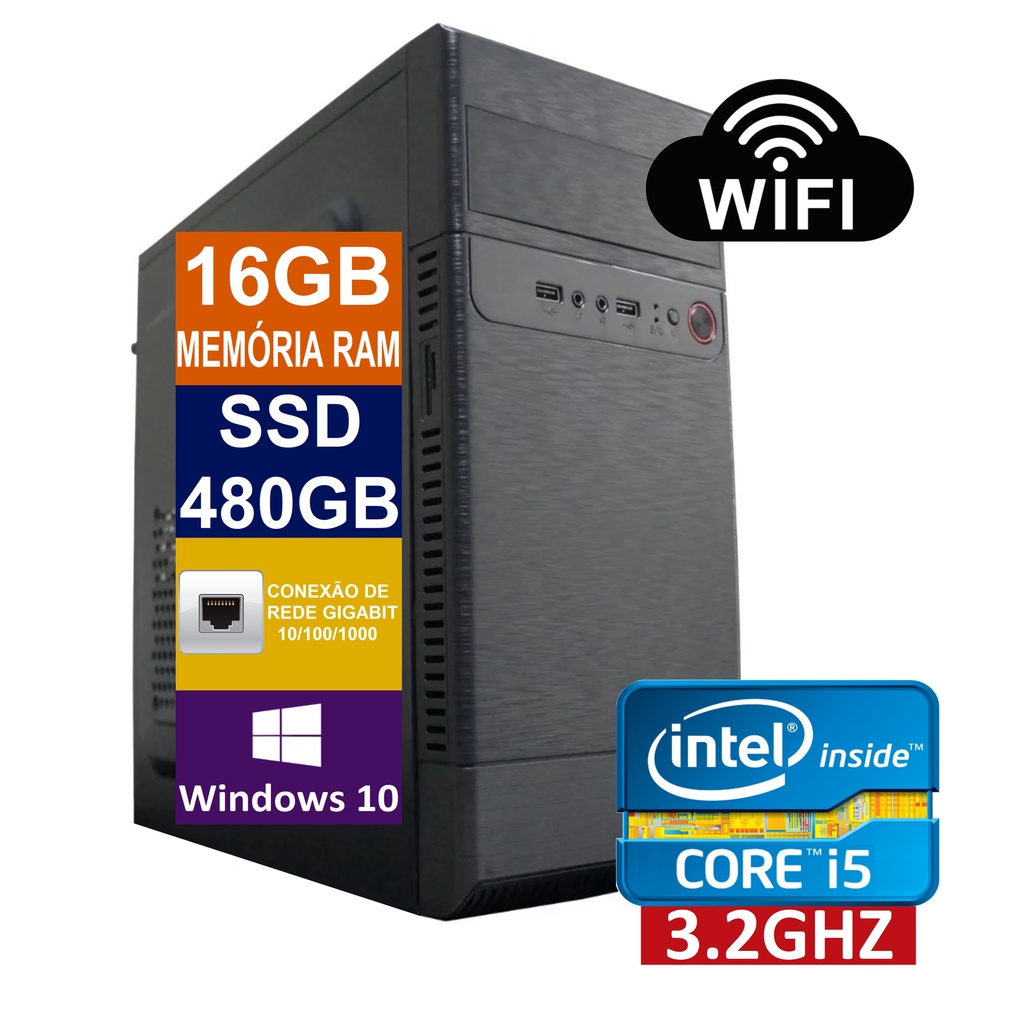 PC Computador CPU Intel Core I5 / SSD 480GB / 16GB Memória Ram / Windows 10 - HDMI e VGA - Fonte 500W