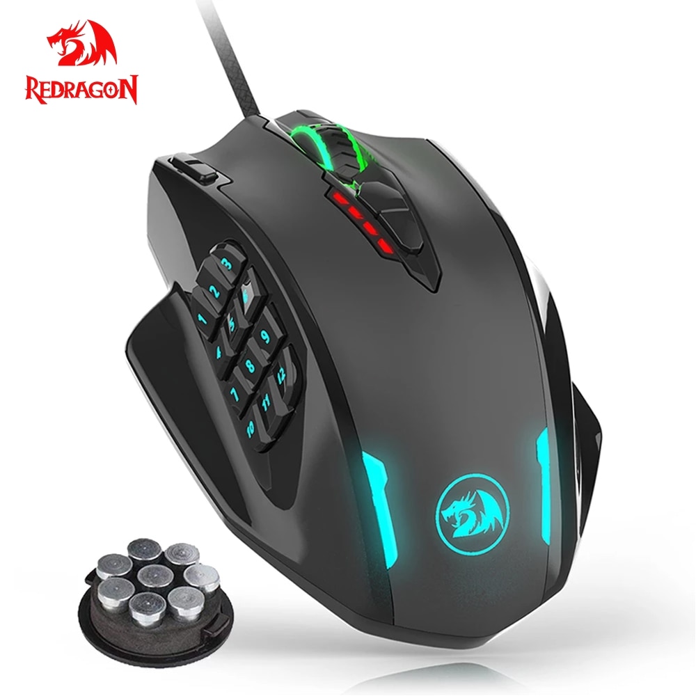 Redragon Impact M908 Mouse Gamer USB com fio RGB 12400 DPI 17 botões de jogo programável Mouse óptico