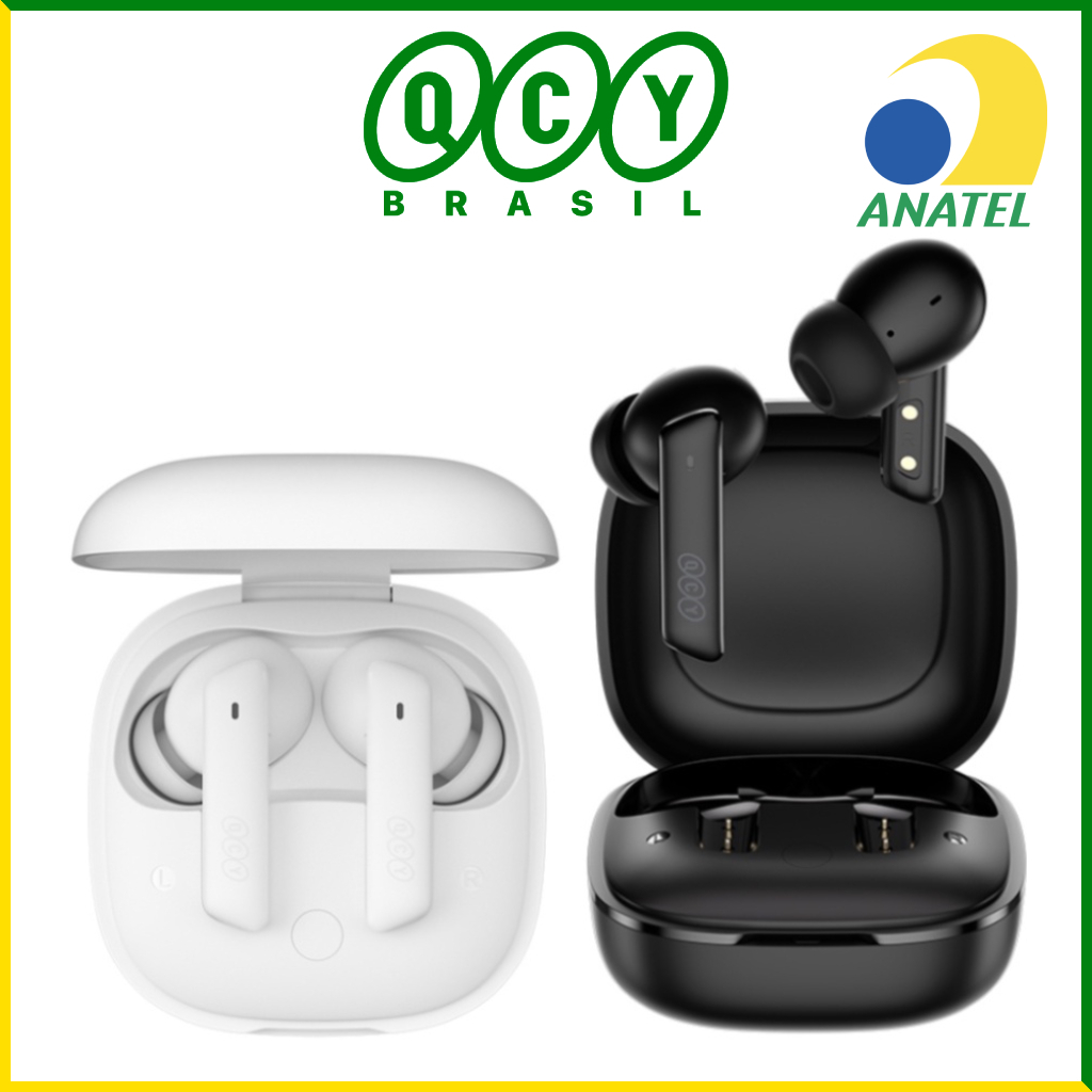 Fone de Ouvido QCY HT05 MeloBuds Bluetooth 5.2, Cancelamento de Ruído Ativo ANC - Preto e Branco