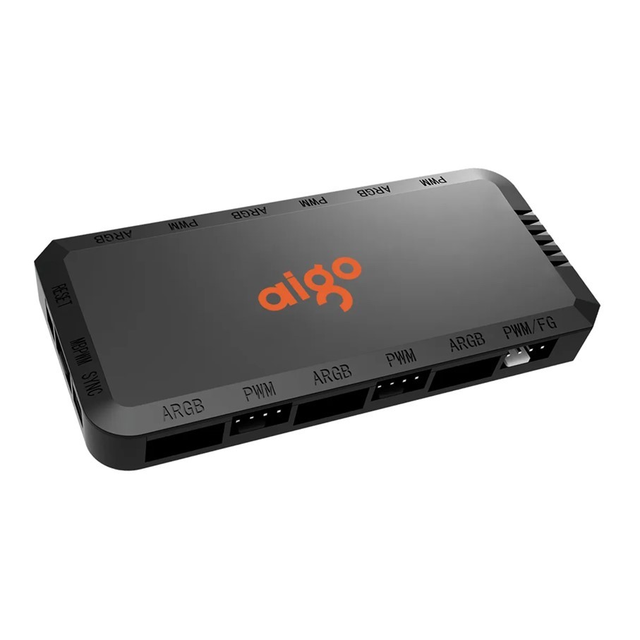 Hub e Controlador de Fan Aigo, LED ARGB 5V 3 Pinos, PWM 4 Pinos, 6 Portas, Alimentação SATA