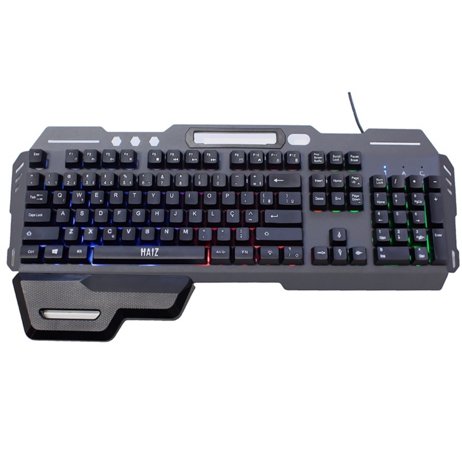 Teclado Gamer Rgb Semi Mecanico Haiz Iluminado Usb Com Apoio HZ-1000 Console Pc Usb
