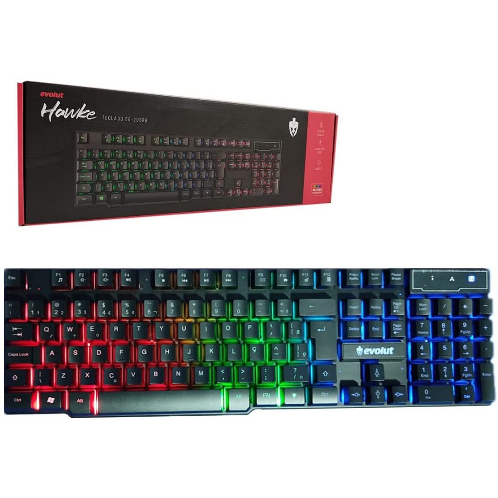 Teclado Gamer Com LED RGB Semi Mecânico ABNT2 Pc Gamer Notebook Com Fio Evolut Hawke