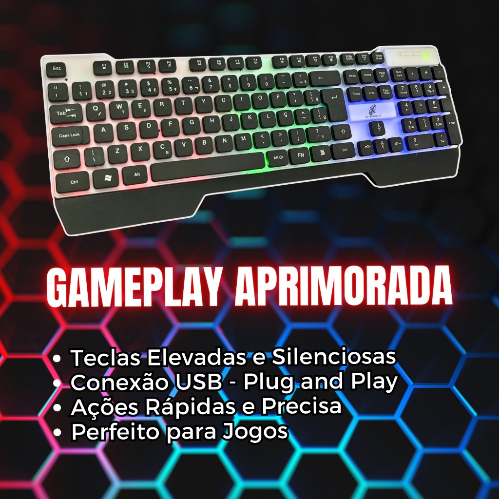 Kit Teclado Gamer Semi Mecanico e Mouse Led RGB com fio USB
