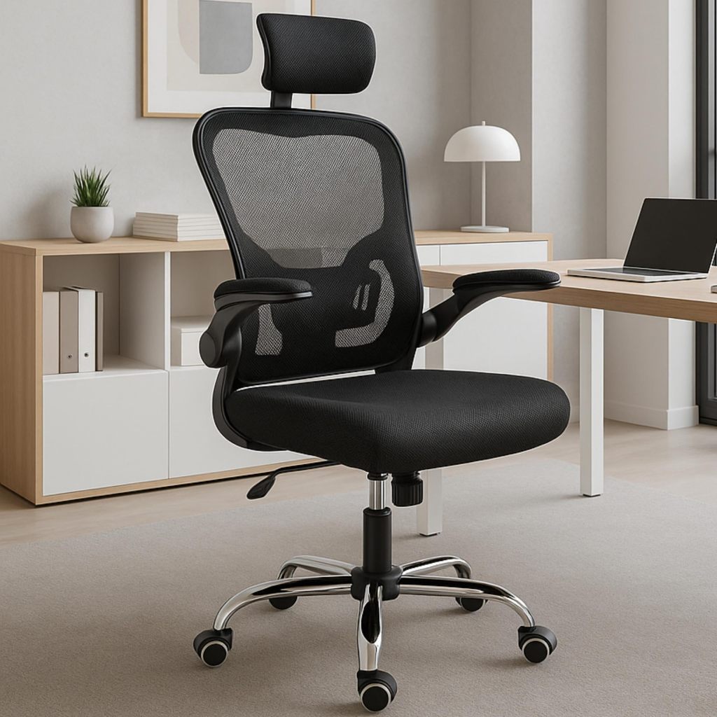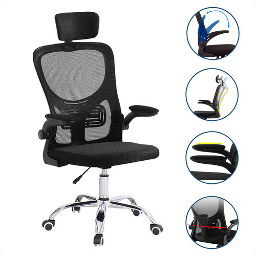Cadeira Ergonômica de Escritório Presidente Preta – Encosto Mesh, Reclinável até 135°, Apoio de Cabeça