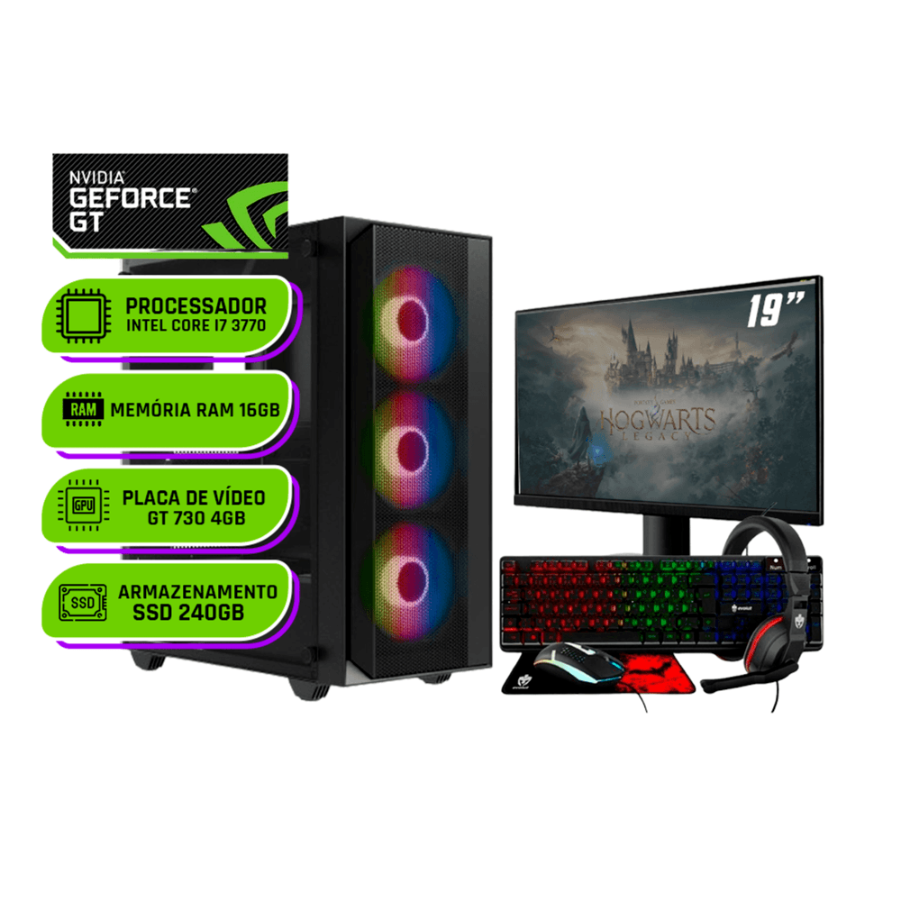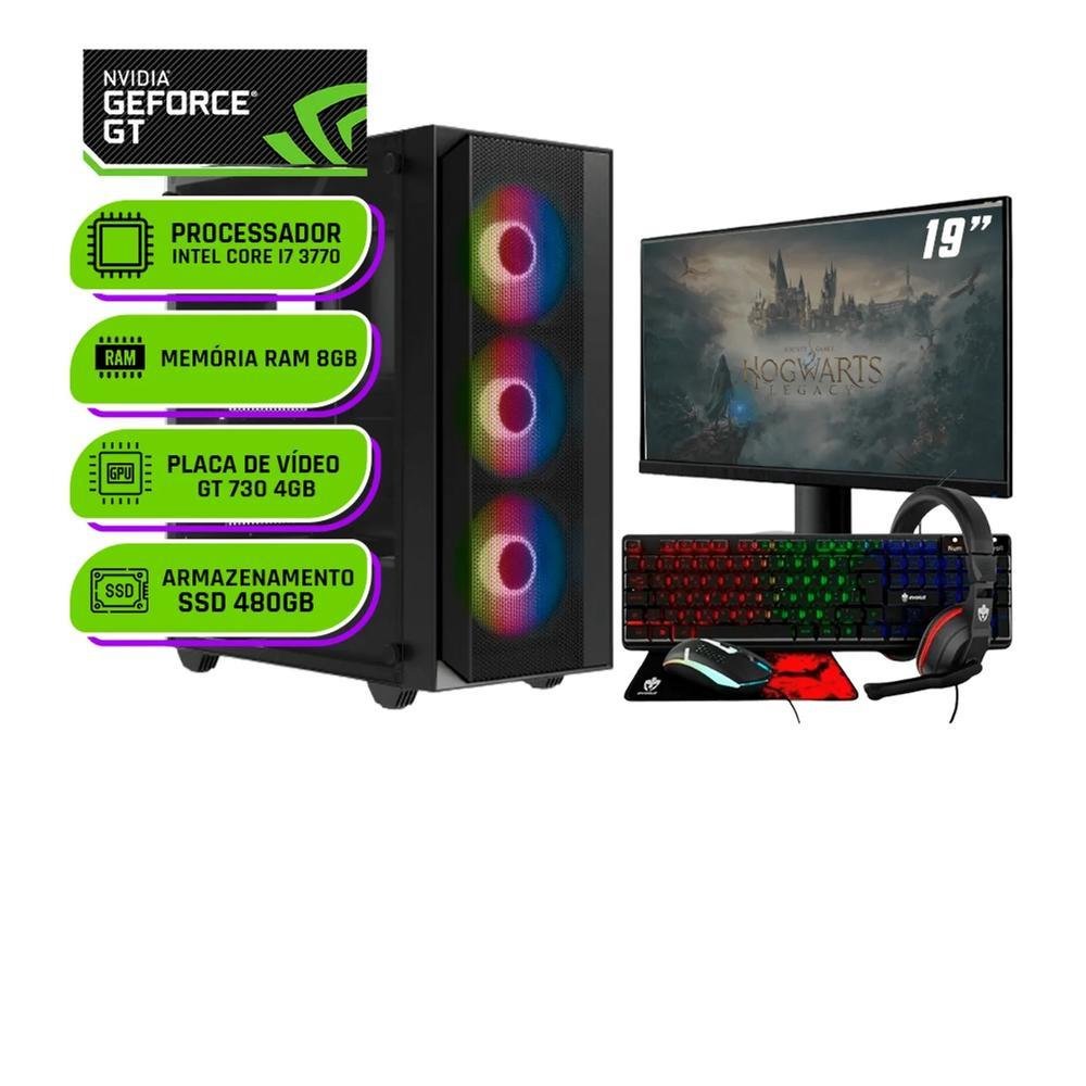 PC Gamer Completo Ark Intel Core I7 3770, 8GB, GT 730 4GB, SSD 480GB, Linux + Monitor HD LED 24 Polegadas + Kit Gamer