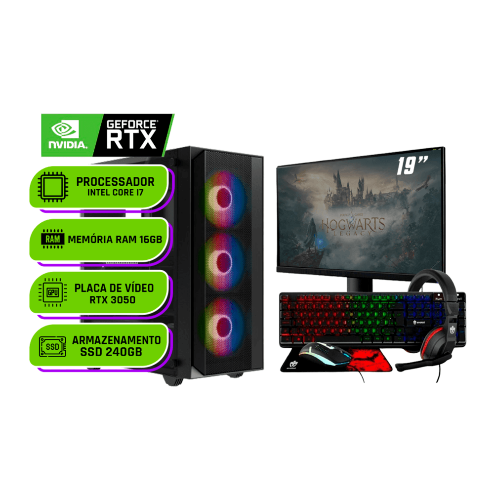 PC Gamer Completo Alligator Shop Intel I7 3770, Geforce RTX 3050, Memoria 16gb Ddr3, SSD 240GB, Monitor 19 "