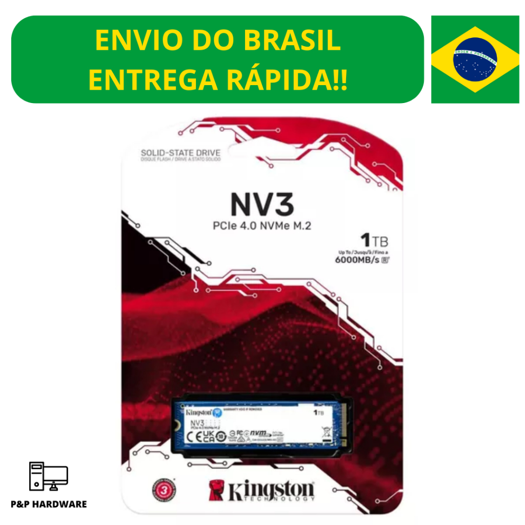 SSD PCIe Kingston NV3, 1 TB, M.2 2280, NVMe, Leitura: 6000 MB/s e Gravação: 4000 MB/s - SNV3S/1000G