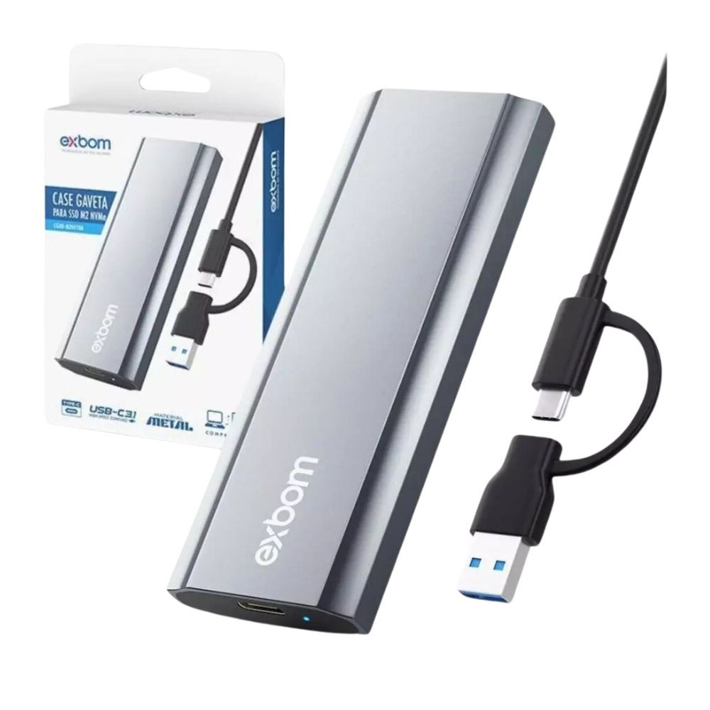 Case Portátil para SSD M.2 NVME Externo USB 3.2 10Gbps Ultra Velocidade USB-C Gen2