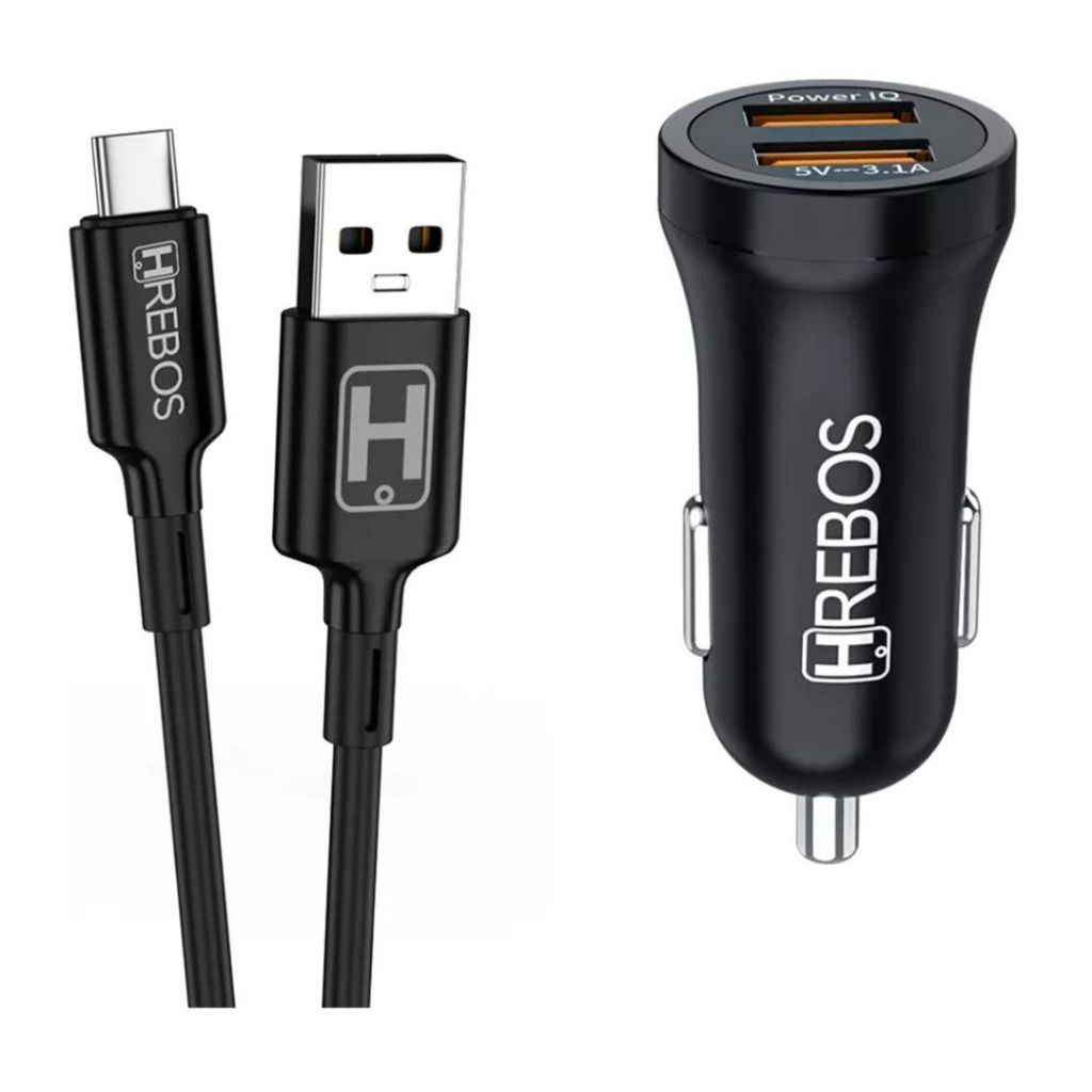 Kit Carregador Veicular 2 Saídas Usb 12v Turbo + Cabo Tipo C