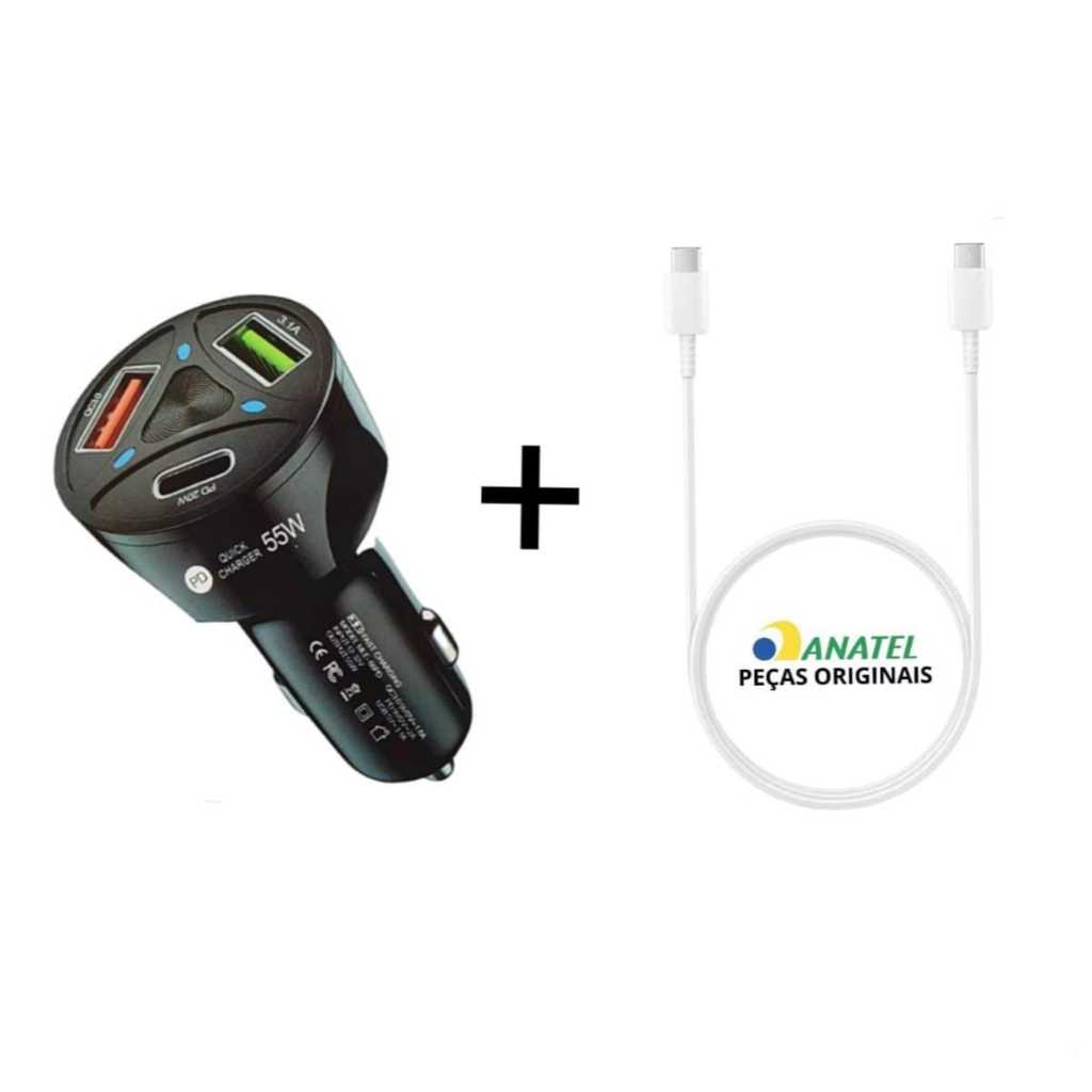 Kit Carregador Veicular Turbo + Cabo USB-C Para Carregamento Turbo Cabo + Carregador Veicular TIPO-C