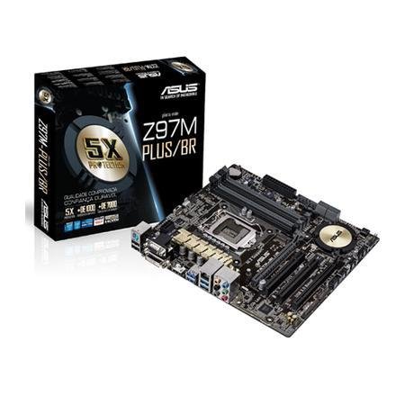 Placa-Mãe ASUS p/ Intel LGA 1150 mATX Z97M-PLUS/BR 4xDDR3 HDMI/DVI/VGA, USB3.0, CrossfireX, Soquete M.2, SATA6GB/s, Rede Intel