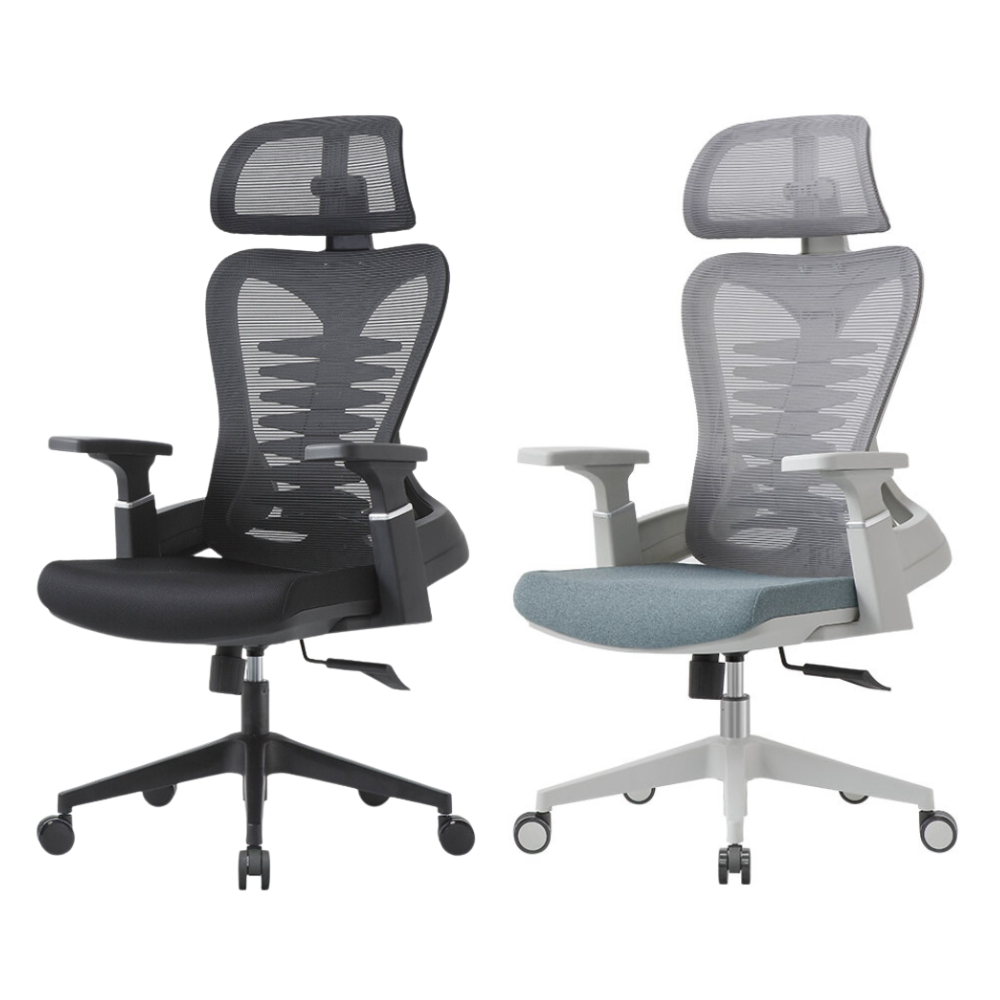 Cadeira de escritório, design ergonômico com suporte lombar independente, malha respirável e encosto de cabeça ajustável(Cinza)