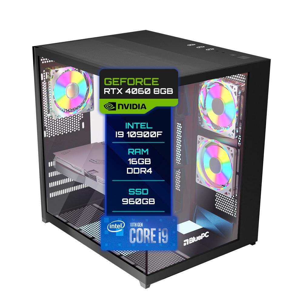PC Gamer BluePC 10900f, RTX 4060, Intel Core I9, 16GB, DDR4, 8GB, SSD 960GB, Fonte 650w