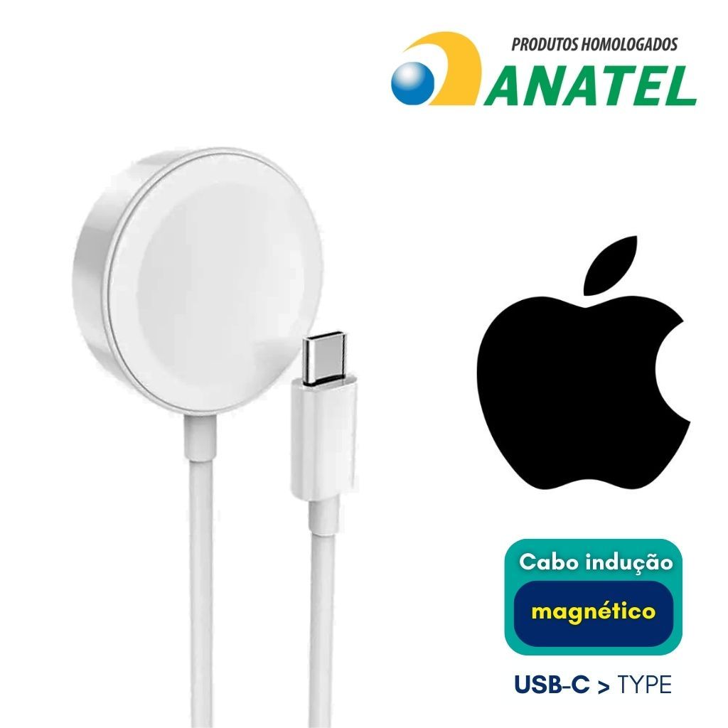 Carregador Magnético Turbo Relógio Apple Watch Series 3 4 5 6 7 8 Se Cabo Indução Type-C Base Tipo C 1 Metro Unidade Kit