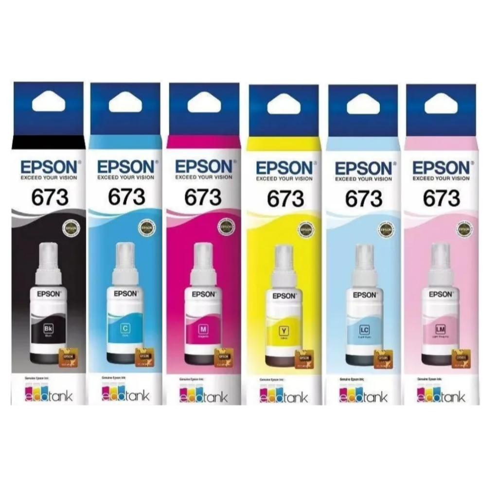 Kit Tinta Epson Com 7 Refis Original T673 Ecotank 6 Cores C+lc+m+lm+y+k Compatível Impressoras L800 L805 L810 L850 L1800