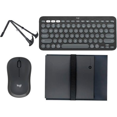 Kit para Notebook de até 15.6" Teclado Pebble Keys 2 e Mouse M240 Sem Fio Logitech, com Capa OrguiBag e Suporte LiteStand Octoo