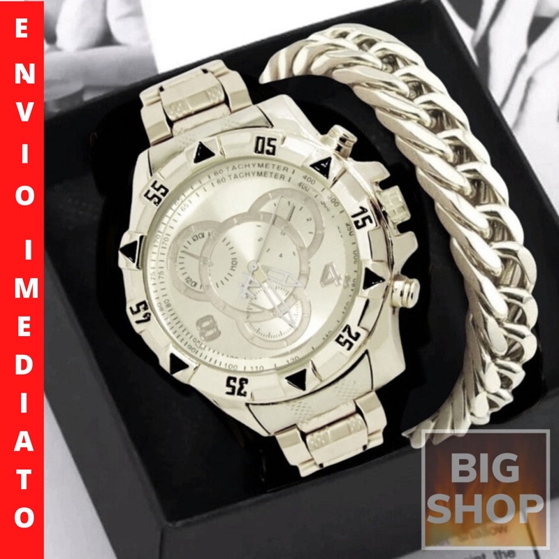 Relógio (PREFERIDO) + Pulseira De Prata | CRETA Dourado de Pulso Masculino Analógio de Metal Quartz Fashion