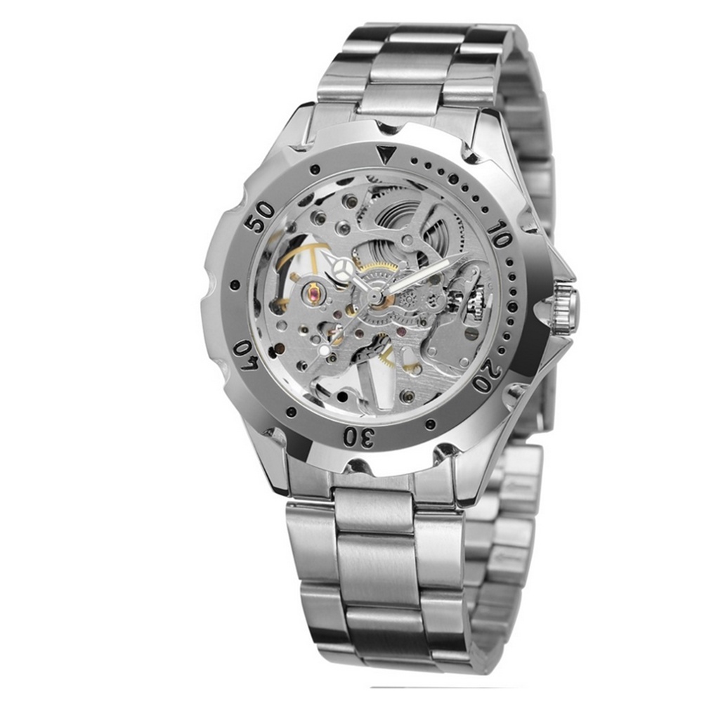 Relógio De Pulso Masculino Mecânico Automático Com Pulseira Em Aço Inoxidável (Prata)
