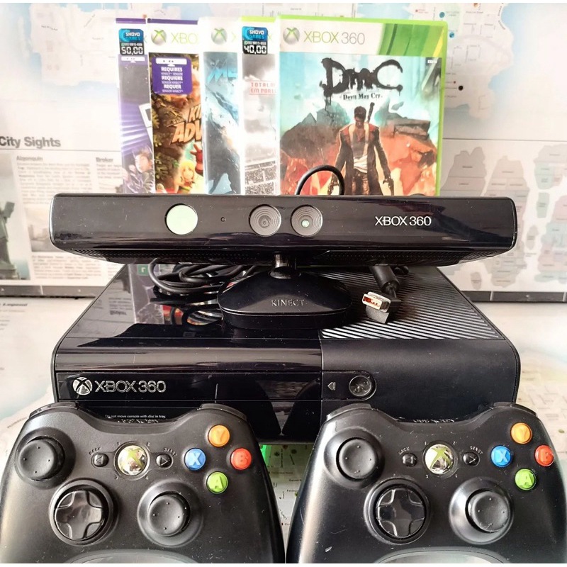 Xbox Slim 360 + kinect + 2 controles + 4 jogos na caixa