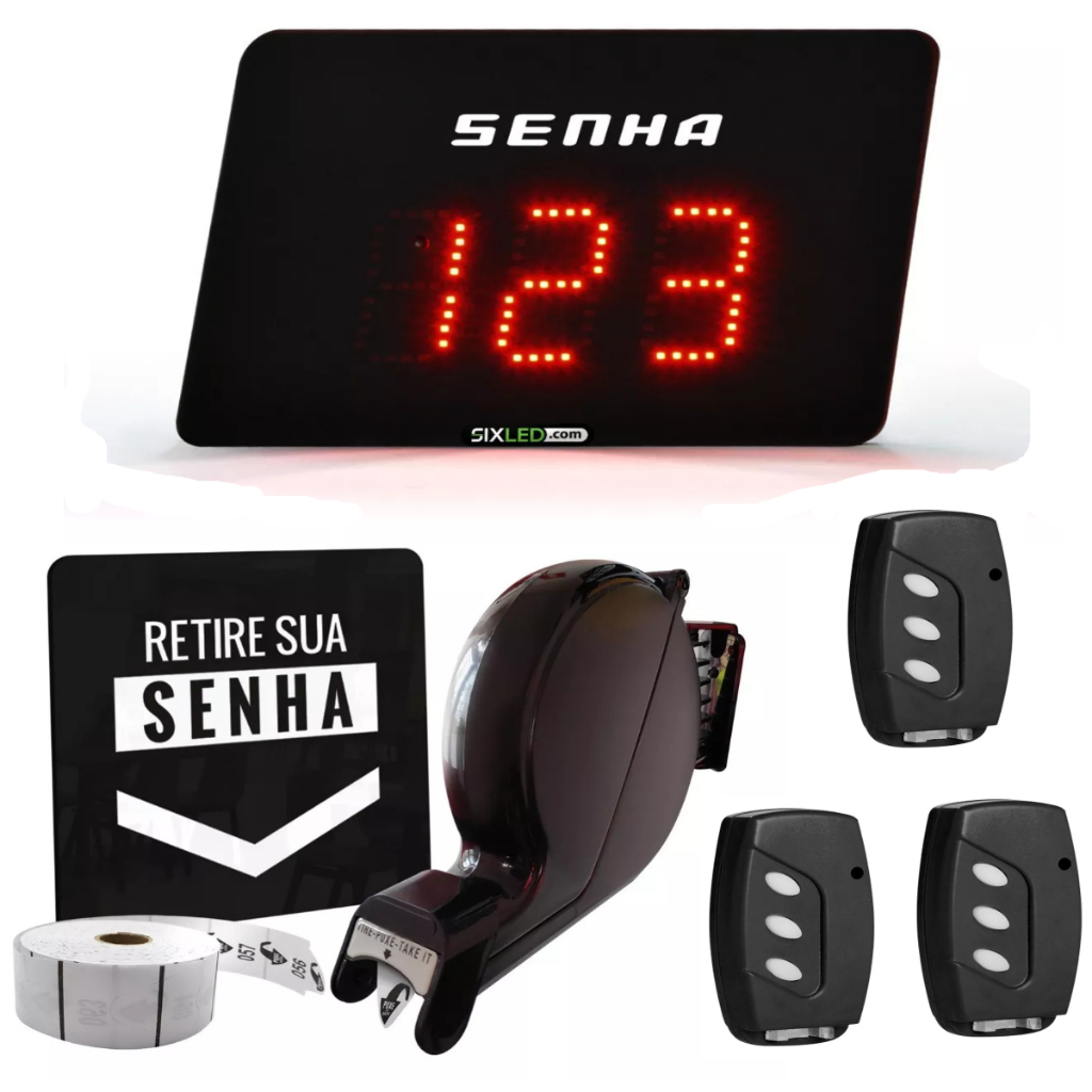 Kit Completo Painel De Senha Com Dispensador Placa Bobina E 3 Controles Seuqenciais Barato