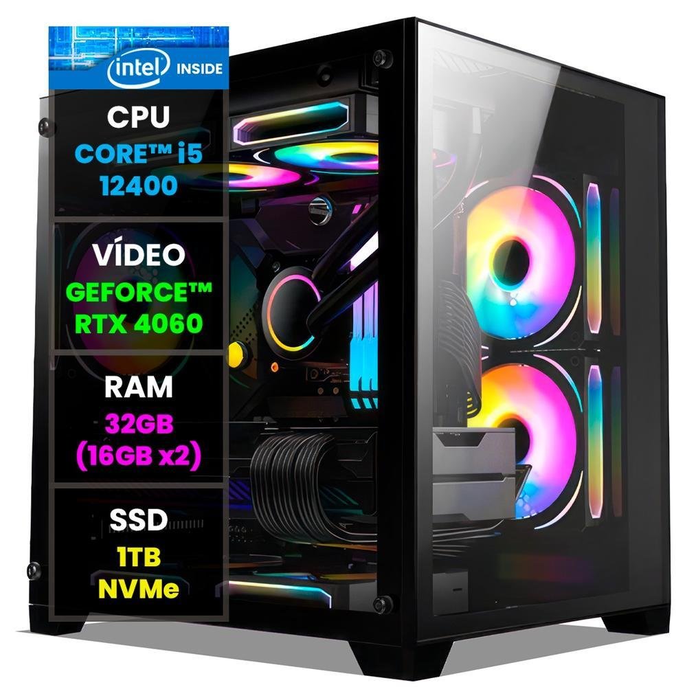 PC Gamer Computador Completo Nolag Amd Ryzen 5 7600, GeForce RTX 3080, 16gb Ddr5, SSD 1TB Nvme, Gabinete RGB