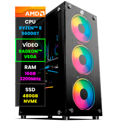PC Gamer Computador Completo NoLag AMD Ryzen 5, Radeon™ Graphics Vega, 16GB RAM, SSD 480GB NVMe, Gabinete RGB