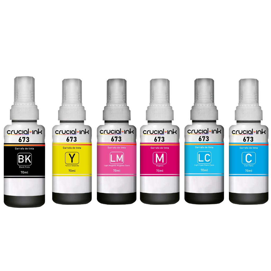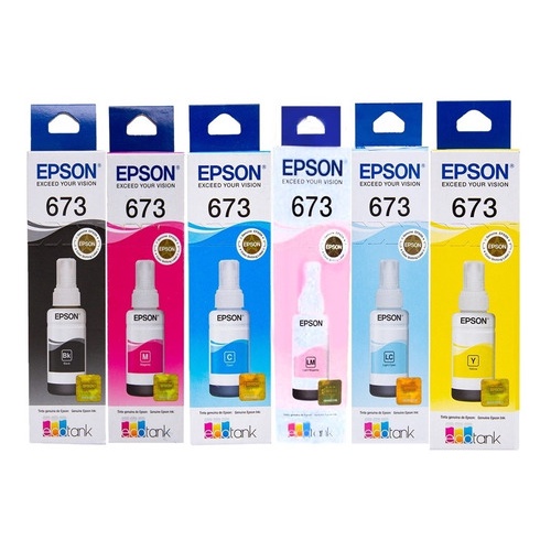 Kit Tinta Epson Com 7 Refis Original T673 Ecotank 6 Cores C+lc+m+lm+y+k Compatível Impressoras L800 L805 L810 L850 L1800
