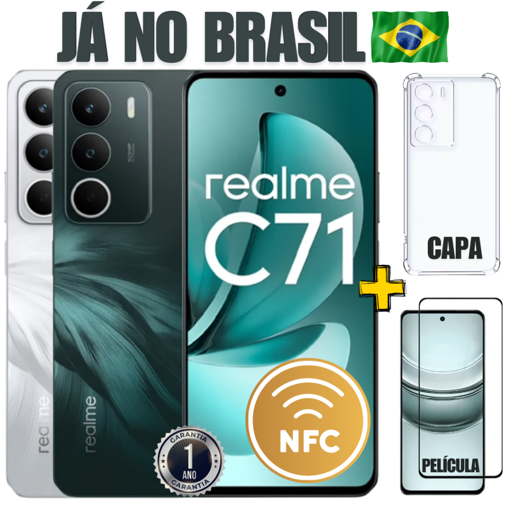 Celular Smartphone Realme C71 com NFC 256GB + 8GB RAM Dual SIM Tela de 6.67" + Capa e Película de Cortesia