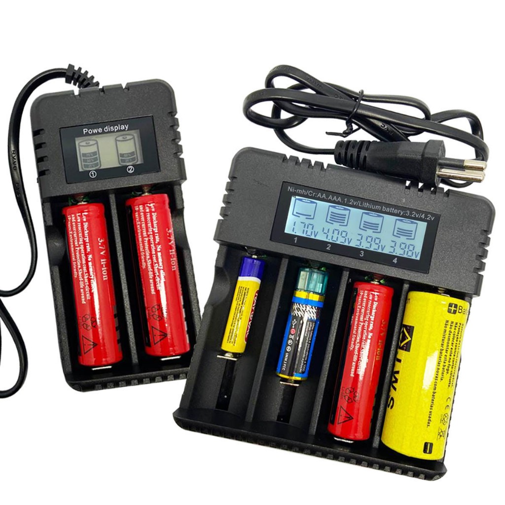 Carregador Bateria Turbo 18650, 16340, 14500, 26650 Visor Display Inteligente 2 e 4 Slots