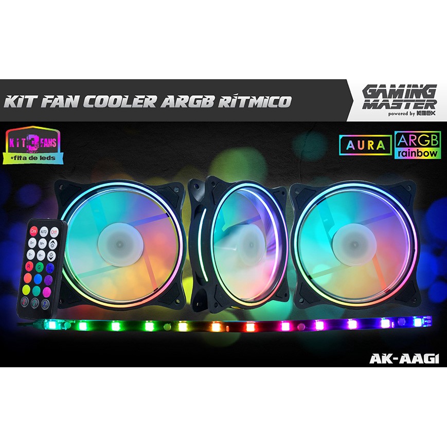 Kit Fan com 3 Cooler ARGB Rítmico com Fita LED RGB -AK-AAG1