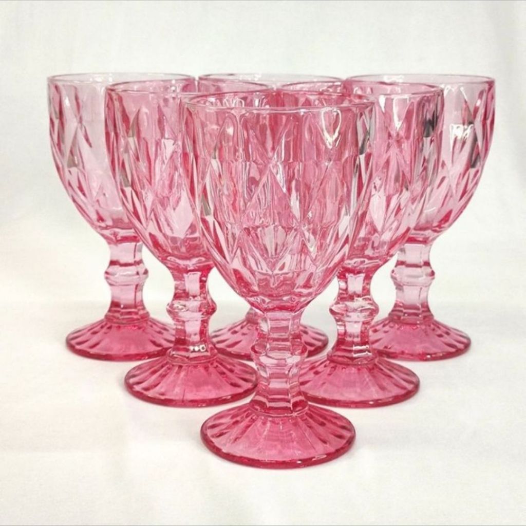 Jogo Com 6 Taças Modelo Diamante Diamond Transparente em Vidro 340ml Cristal Ecológico Fácil de Limpar Pratico Ótima Qualidade Excelente Taça para Vinho e agua