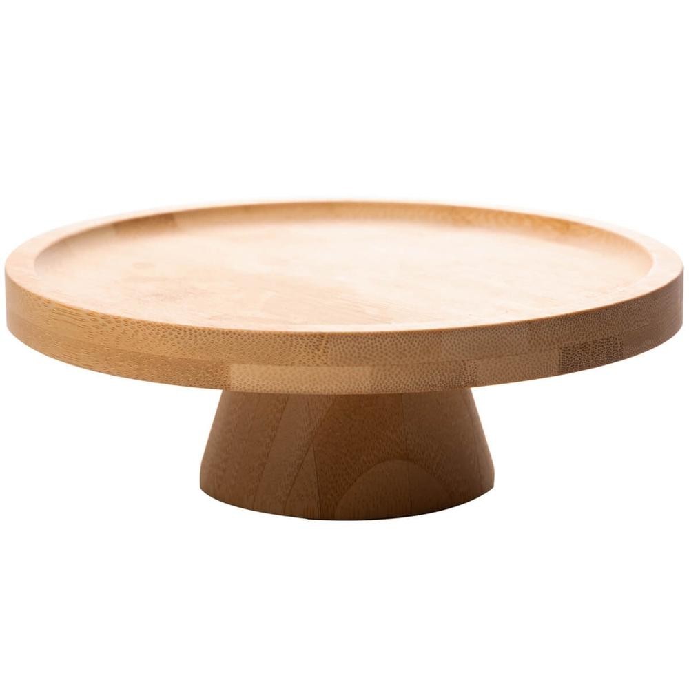 Prato para Bolo em Bambu com Pé 20x7cm Lyor Redondo Boleira Pequena com Pedestal
